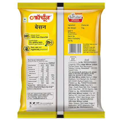 Tags: grocery staples, fortune besan, gram flour, chana dal flour, 1kg besan, pakora flour, dhokla flour, kadhi besan, cooking ingredients, indian grocery, premium besan